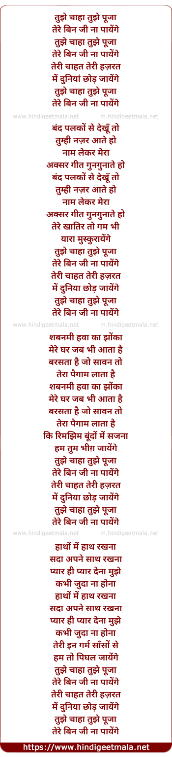 Lyrics of Tujhe Chaha - तुझे चाहा