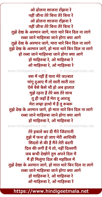 tujhe dekh ke arma jage, mara thare bin dil na lage