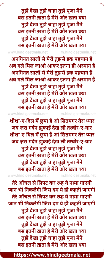 tujhe dekha tujhe chaha tujhe pooja maine, bas kitni khata hai meri aur