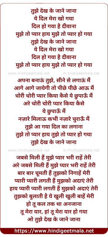 Lyrics of Tujhe Dekhake Jane Jana - तुझे देख के जाने जाना