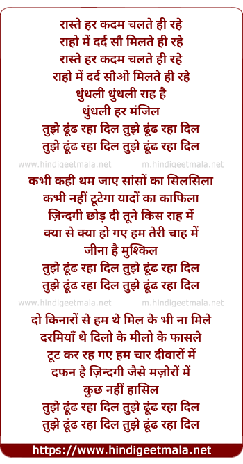 Lyrics of Tujhe Dhoondh Raha Dil - तुझे ढूंढ रहा दिल