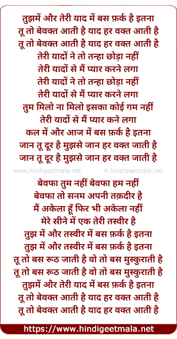 Lyrics of Tujhme Aur Teree Yad Me - तुझमें और तेरी याद में बस फ़र्क है इतना