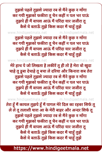 Lyrics of Tujhse Pehle Tujhse Zyada - तुझसे पहले तुझसे ज्यादा