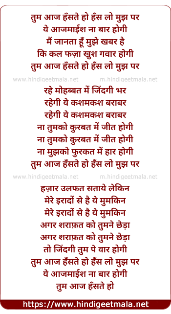 Lyrics of Tum Aaj Hansate Ho Hans Lo Mujh Par Mukesh Gazal - तुम आज हँसते हो हँस लो मुझ पर
