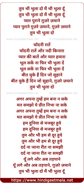 Lyrics of Tum Bhi Bhula Do Mai Bhi Bhula Du - तुम भी भुला दो मैं भी भुला दूँ