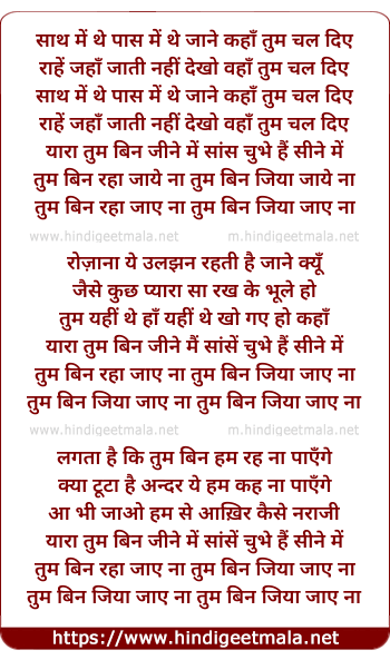 yara tum bin jine me saansein chhubhe hai sine me