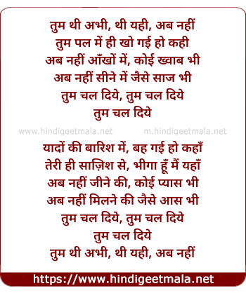 Lyrics of Tum Chal Diye (Reprise) - तुम थी अभी, थी यही, अब नहीं