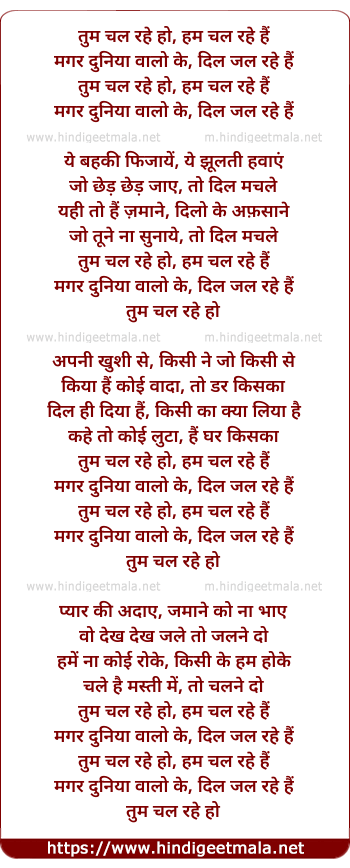 Lyrics of Tum Chal Rahe Ho, Ham Chal Rahe Hai - तुम चल रहे हो, हम चल रहे हैं