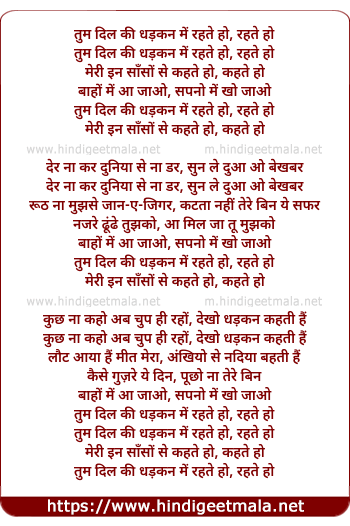 Lyrics of Tum Dil Ki Dhadkan Mein - तुम दिल की धड़कन में रहते हो, रहते हो