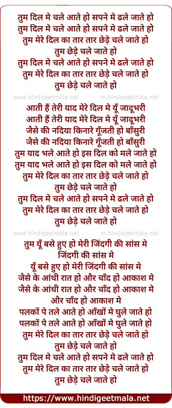 Lyrics of Tum Dil Me Chale Aate Ho - तुम दिल मे चले आते हो