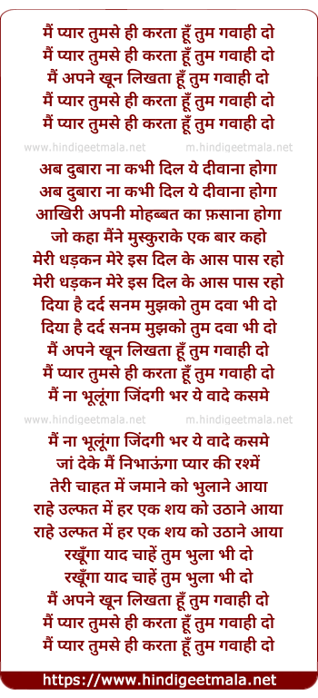 Lyrics of Main Pyar Tumse Hi Karata Hu Tum Gawaahi Do - मैं प्यार तुमसे ही करता हूँ तुम गवाही दो