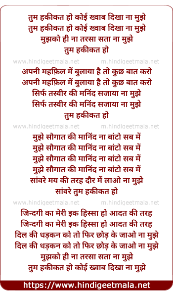 Lyrics of Tum Haqiqat Ho - तुम हकीकत हो कोई ख्वाब दिखा ना मुझे