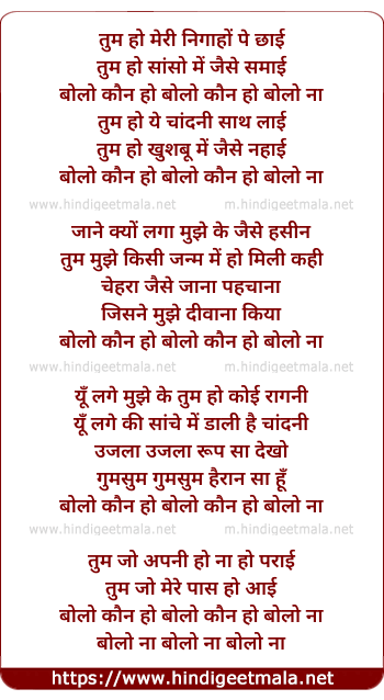 Lyrics of Tum Ho Meri Nighaon Mein - तुम हो मेरी निगाहों पे