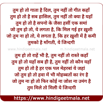 Lyrics of Tum Ho To Gaata Hai Dil - तुम हो तो गाता है दिल