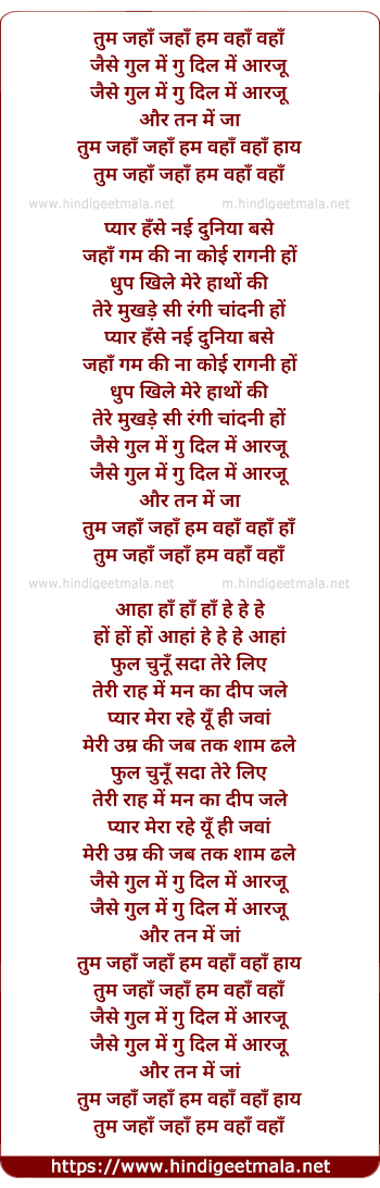 Lyrics of Tum Jahan Jahan Hum Wahan Wahan - तुम जहाँ जहाँ हम वहाँ वहाँ