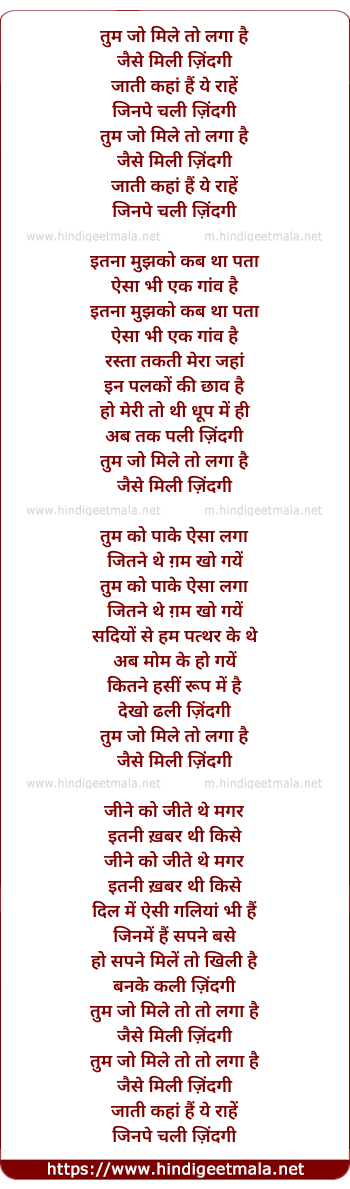 Tum Jo Mile Toh Laga Hai - तुम जो मिले तो लगा है