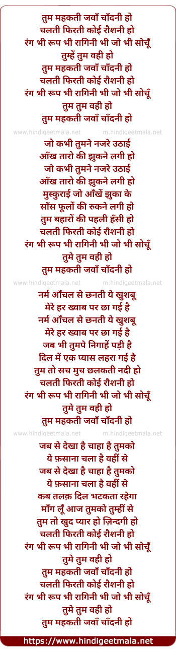 Lyrics of Tum Mahakti Jawaan Chandni Ho - तुम महकती जवाँ चाँदनी हो