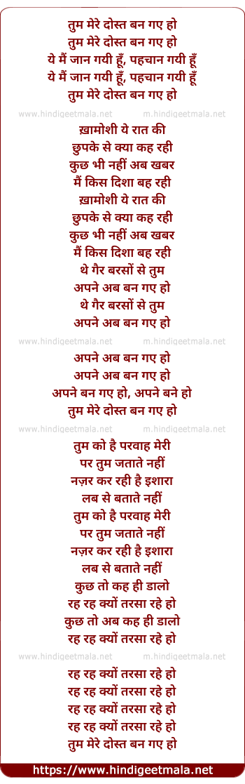 Lyrics of Tum Mere Dost Ban Gaye - तुम मेरे दोस्त बन गए