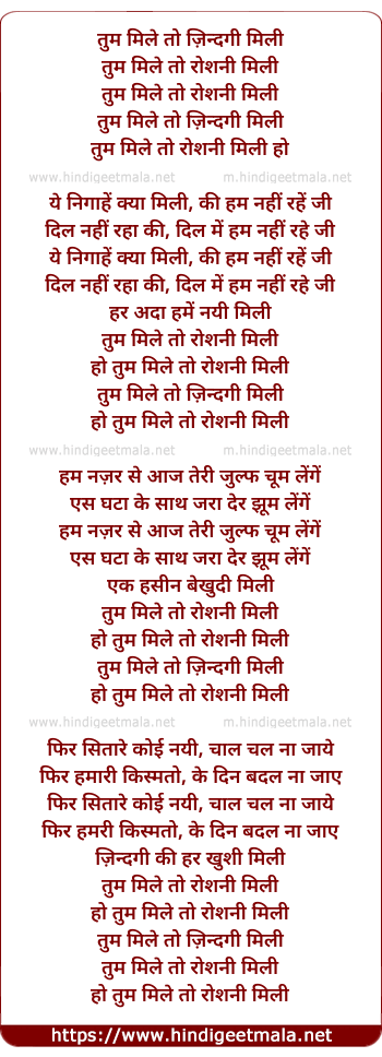 Lyrics of Tum Mile To Zindagi Mili - तुम मिले तो ज़िन्दगी मिली