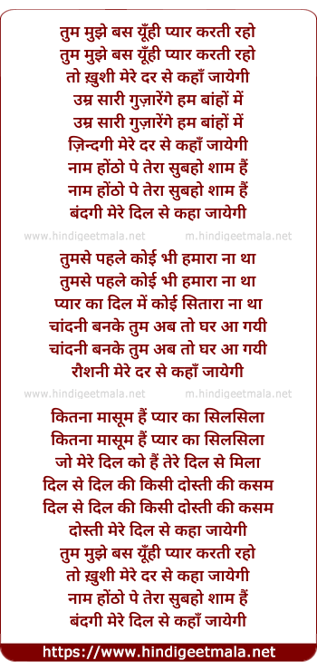 Lyrics of Tum Mujhe Bas Yuhi Pyar Karti Raho - तुम मुझे बस यूँही प्यार करती रहो