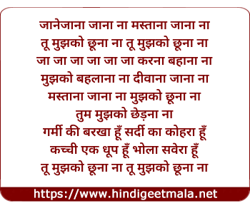 Lyrics of Tum Mujhko Chhuna Na - जानेजाना जाना ना मस्ताना जाना ना
