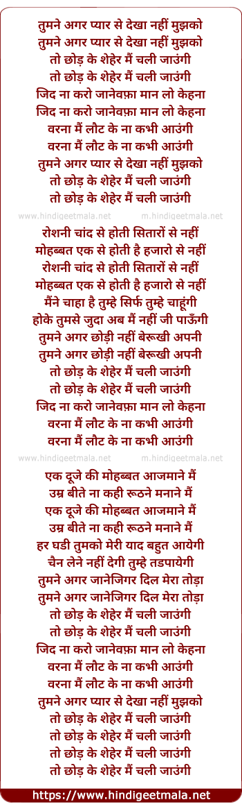 Lyrics of Tum Ne Agar Pyar Se Dekha (Female) - तुमने अगर प्यार से देखा नहीं मुझको