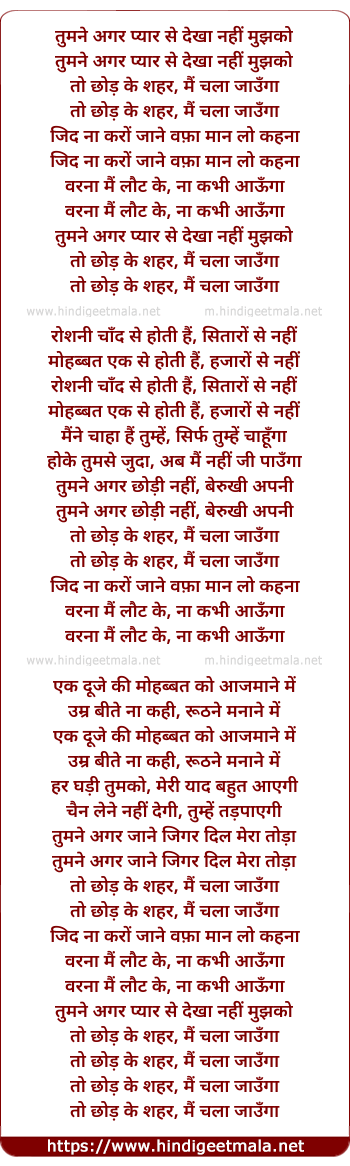 Lyrics of Tum Ne Agar Pyar Se Dekha (Male) - तुमने अगर प्यार से देखा नहीं मुझको