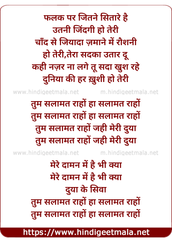 Lyrics of Tum Salamat Raho Hazar Baras - तुम सलामत राहों हज़ार बरस