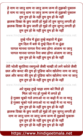 Lyrics of Tum Tum Ho Ke Nahi - तुम तुम हो के नहीं