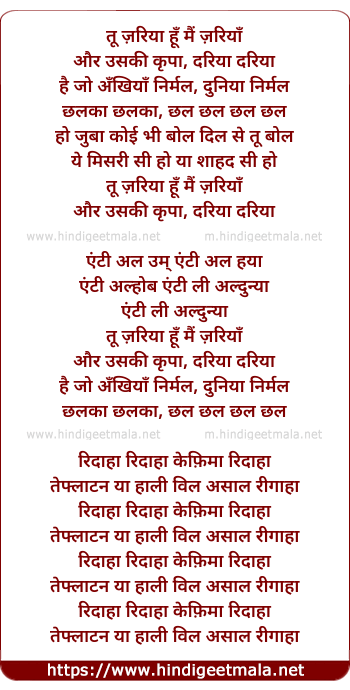 Lyrics of Tum Zariya Hu Mai Zariya - तू ज़रिया हूँ मैं ज़रियाँ