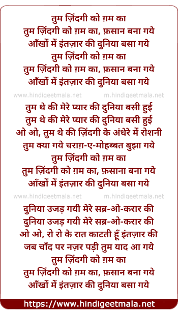 Lyrics of Tum Zindagi Ko Gam Ka - तुम ज़िंदगी को ग़म का