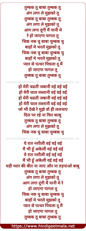 Lyrics of Tumbak Tu Baba Tumbak Tu - तुम्बक तू बाबा तुम्बक तू