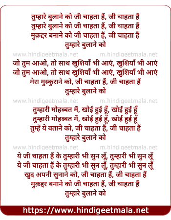 Lyrics of Tumhaare Bulaane Ko Ji Chaahataa Hai - तुम्हारे बुलाने को जी चाहता हैं