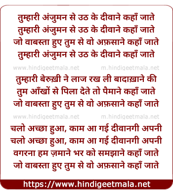 Lyrics of Tumhari Anjuman Uthke Diwane Kaha Jate - तुम्हारी अंजुमन से उठ के दीवाने कहाँ जाते