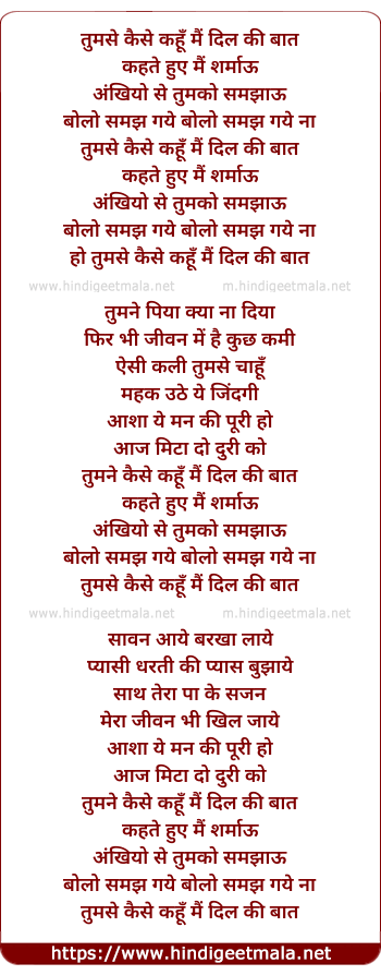 Lyrics of Tumhe Kaise Kahu Mai Dil Ki Baat - तुमसे कैसे कहूँ मैं दिल की बात