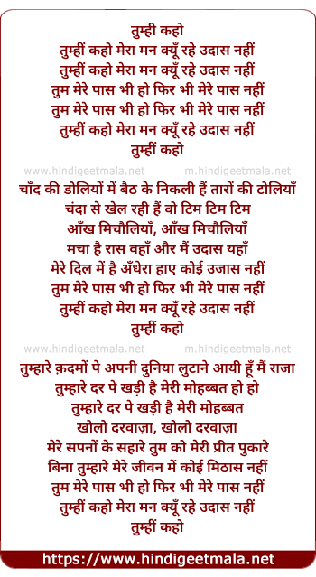 Lyrics of Tumhee Kaho Meraa Man Kyun Rahe Udas Nahee - तुम्हीं कहो मेरा मन क्यूँ रहे उदास नहीं