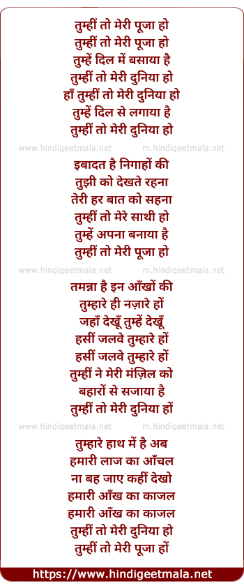 Lyrics of Tumhi To Meri Pooja Ho - तुम्हीं तो मेरी पूजा हो