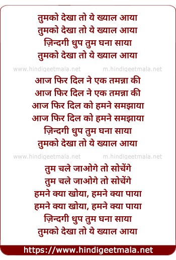 Lyrics of Tumko Dekha To Yeh Khayal Aaya - तुमको देखा तो ये ख्याल आया