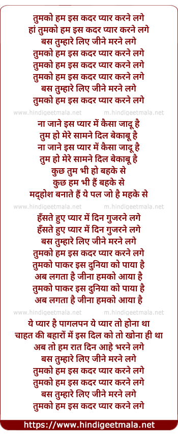 Tumko Ham Iss Kadar Pyaar Karne Lage - तुमको हम इस कदर प्यार करने लगे