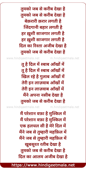 Lyrics of Tumko Jab Se Karib Dekha Hai, Bekarari Karar Lagti Hai - तुमको जब से करीब देखा है, बेकरारी करार लगती है