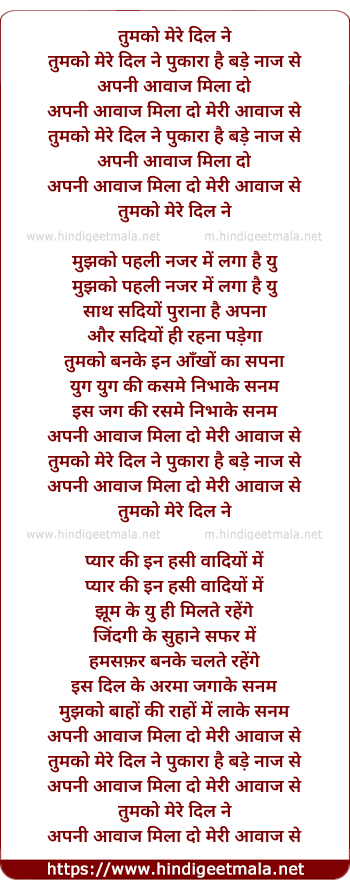 Tumko Mere Dil Ne Pukara Hai Bade Naz Se - तुमको मेरे दिल ने पुकारा है बड़े नाज से