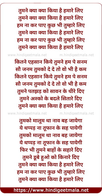 Lyrics of Tumne Kya Kya Kiya Hai Hamare Liye - तुमने क्या क्या किया है हमारे लिए