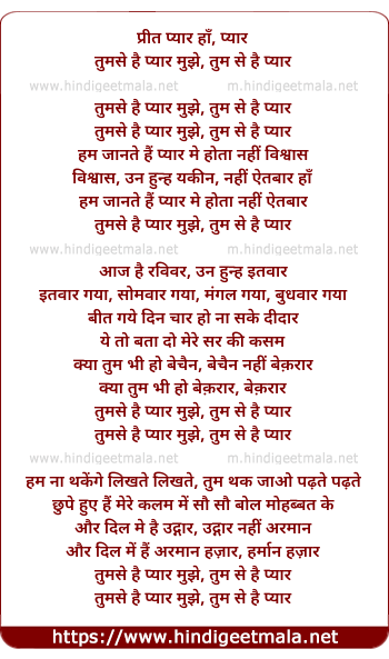 Lyrics of Tumse Hai Pyaar Mujhe - तुमसे है प्यार मुझे