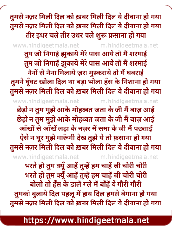 Lyrics of Tumse Nazar Mili Dil Ko Khabar Mili - तुमसे नज़र मिली दिल को ख़बर मिली
