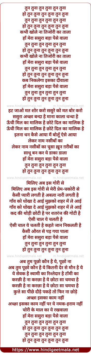 Lyrics of Tun Tunaa, Kabhi Khole Na Tijori Kaa Taalaa - तुन तुना ,कभी खोले ना तिजोरी का ताला