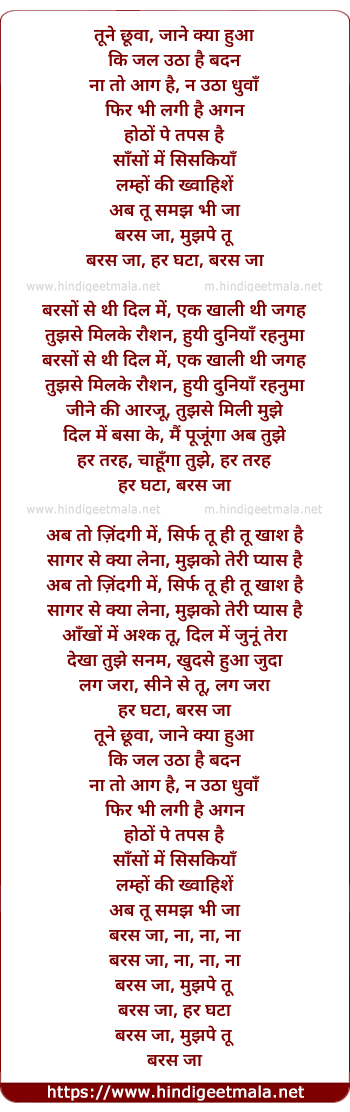 Lyrics of Tune Chhua Baras Jaa - तूने छुआ बरस जा