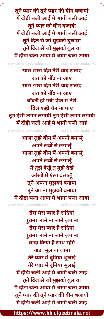 Lyrics of Tune Pyar Ki Bin Bajayi - तूने प्यार की बीन बजायी