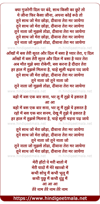 Lyrics of Tune Saath Jo Mera Chhoda - तूने साथ जो मेरा छोड़ा