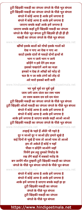 tuti khidki makadi kaa jangla jangle ke pichhe bhoot bangla