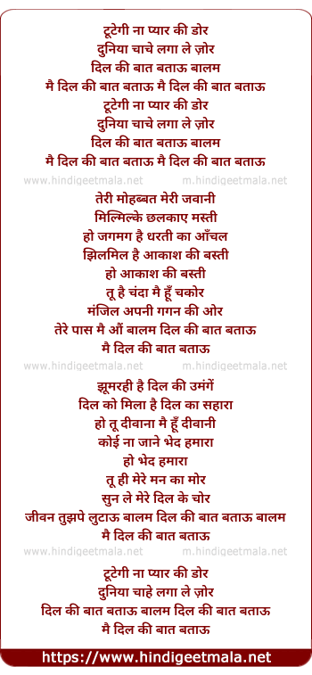 Lyrics of Tutegi Na Pyaar Ki Dor - टूटेगी ना प्यार की डोर